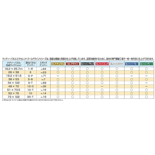 絵柄を一層引き立てる豪華な金モール仕様のパズル専用パネル。落ち着いた色合いのベーシックカラーと色鮮やかなシャインカラーを用意しました。