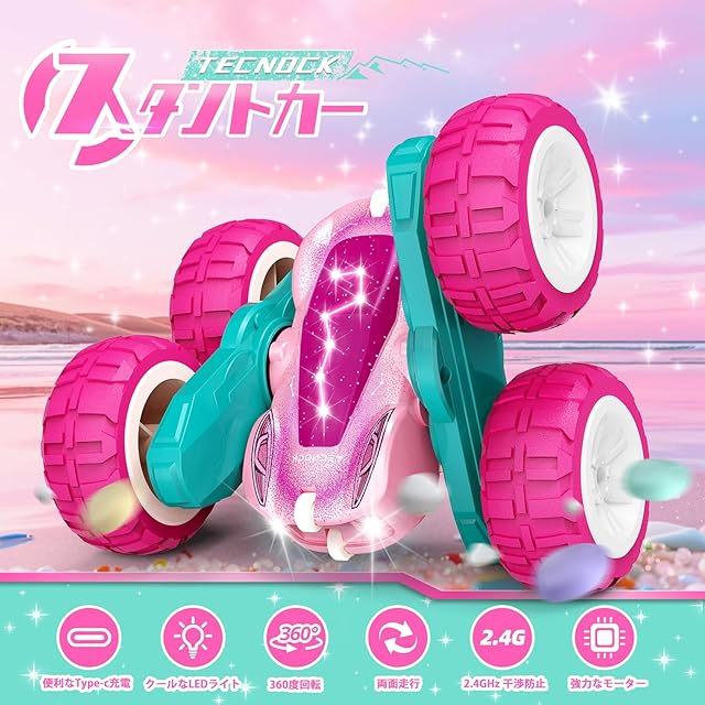 商品名:Tecnock ラジコンカー 子供向け USB-C直接充電式 スタントカー ラジコン おもちゃ 車 4WD 360°回転 プレゼント ピンク