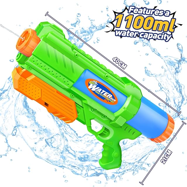 『☆飛距離抜群!』10mもの飛距離を誇る水鉄砲です!1100ml大容量タンク仕様なので、撃てる回数も文句なしです。環境にやさしいABSプラスチック素材を採用しており、お子様でも安心して使っていただけます♪