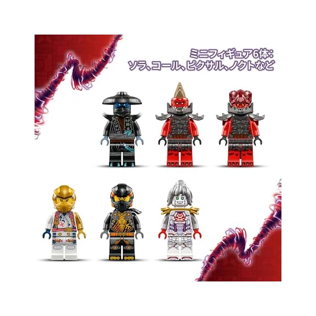 レゴニンジャゴーのキャラクター – ソラ、コール、ピクサル、ノクト、ドラゴニアンウォリアーとドラゴニアンスカウトのミニフィギュア6体が付属しています