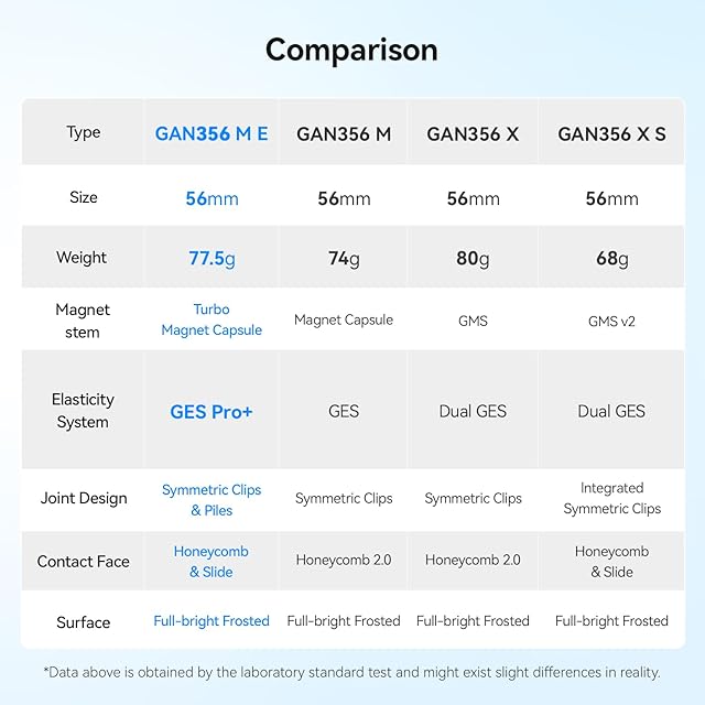 GAN356 M Eは、48個のマグネットとGES Pro+による12段階の張力調整を搭載した、GAN 356 Mのアップグレードバージョンです。ターボマグネットカプセル2.0とハニカム構造により、高速でスムーズな操作感を実現しています。プロもアマチュアも、最高のパフォーマンスを発揮できる究極のスピードキューブです。