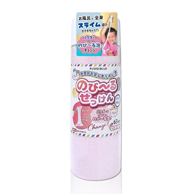 お風呂で楽しく遊びながら、脳と身体の発達を促進する、新発想の知育玩具「子どもの才能 のびーるせっけん」 ・未体験!パウダーに水を加えて混ぜると、スライムのように、びよーんとのびる、楽しい泡にチェンジ! ・のびーる泡は、大人も子どもも夢中になる、ザラザラ・つぶつぶ・もちもち感触 ・のびーる泡はとても強力。水を加えすぎなければ、1時間以上連続して遊ぶことができます ・遊ぶだけで脳が育つ!指先は第2の脳。楽しく遊ぶだけで、創造性・集中力・忍耐力・応用力などの知能が高まります ・大人も驚きの本格的な良い香り。リゾートホテルのようなシトラスと、ジューシーなピーチの2ラインナップ ・のびーるせっけんのオリジナルの技で遊べる!ロープのように回したり、アイスや風船など、色んな形が作れます。 2人で伸ばして、どこまでのびるかチャレンジするのも楽しい♪ ・一般的なスライムに含まれるホウ砂を含まず、食品原料と石鹸成分だけで構成。安心安全にこだわりました。