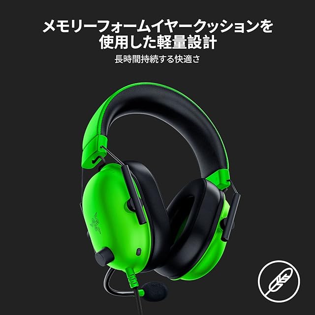 商品名:Razer BlackShark V2 X Green ゲーミングヘッドセット 3.5mmアナログ 7.1ch サラウンド 特許技術採用50mmドライバ 単一指向性マイク ノイズキャンセリング 高遮音性イヤーカップ 軽量240g PC PS4 PS5 Xbox Nintendo Switch 【日本正規代理店品】 RZ04-03240600-R3M1