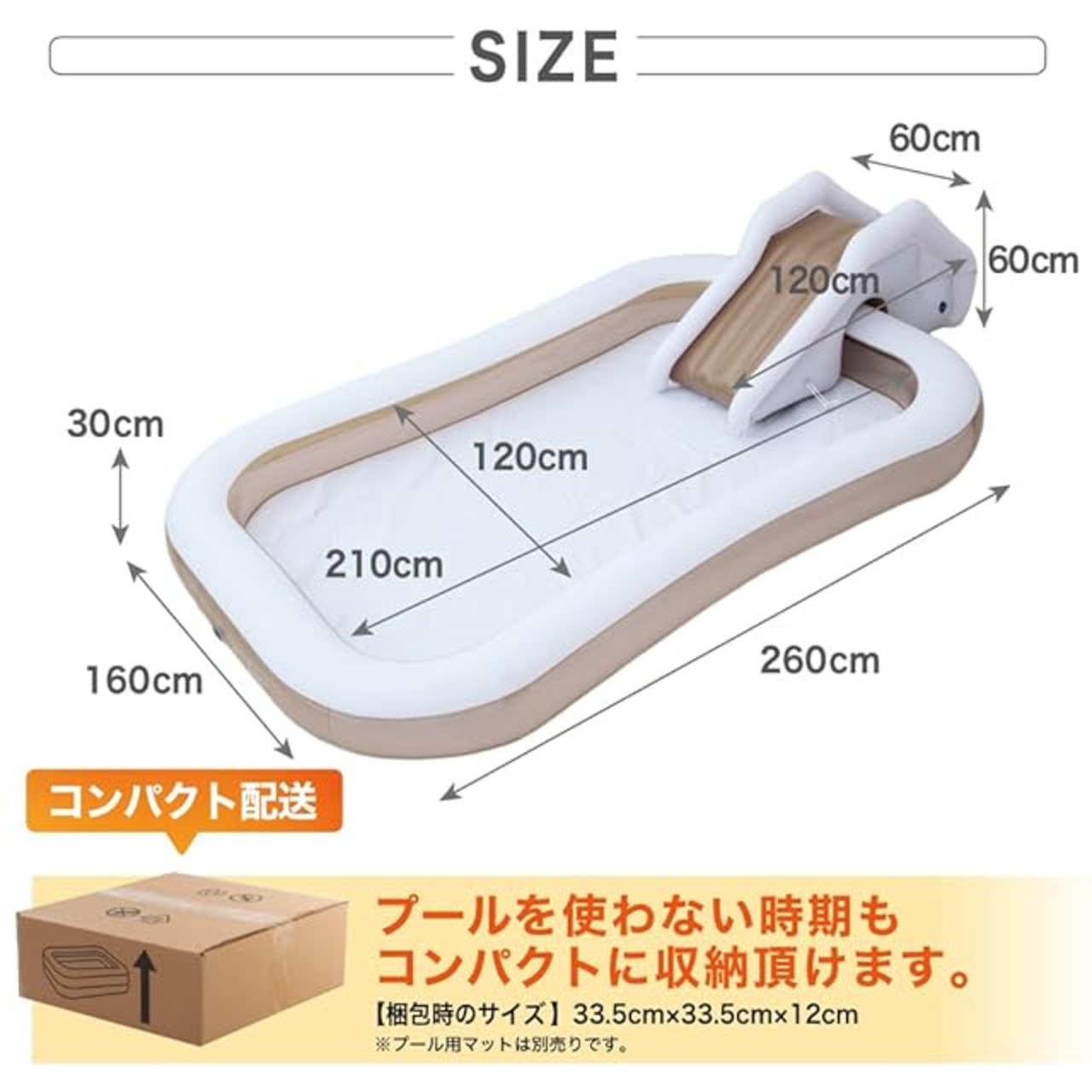 商品名:プール 大型 【子供たちを笑顔にするハッピーファミリープール】 子供用 家庭用 305×180cm 250×160cm 200×150cm 150×100㎝ 【世界シェア約60%独占契約店】 (滑り台付きプール(グレージュ), 250×160×30cm)