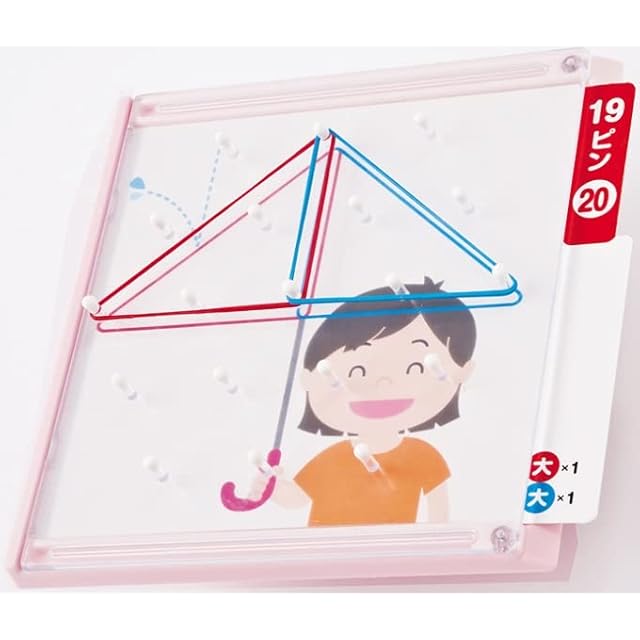 セット内容: ボード2枚(19ピン・81ピン各1枚) わごむ90本(6色9種類) カード30枚(19ピン用・81ピン用各15枚) ガイドブック1部