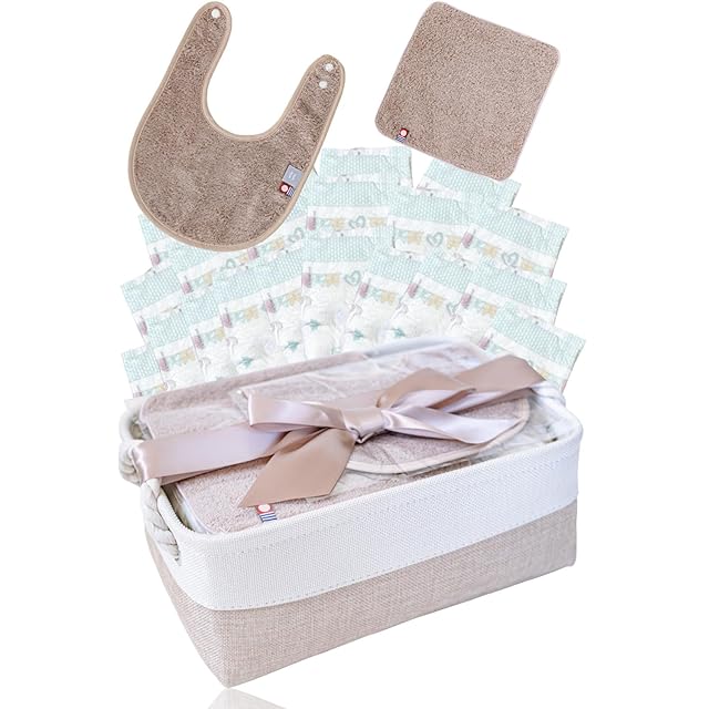 セット内容: おむつ収納バケットx1、スタイ x1、ハンカチx1、おむつ x20 、 メッセージカードx1