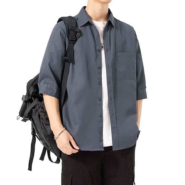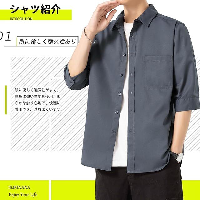 Sukinana シャツ メンズ 七分袖 五分袖 夏服 ゆったり 通気性 速乾性 柔らかい 快適な 大きいサイズ カジュアル シンプル オシャレ 無地 ワイシャツ (JP, アルファベット, 2XL, ダークグレー) | Trend Design BASE店