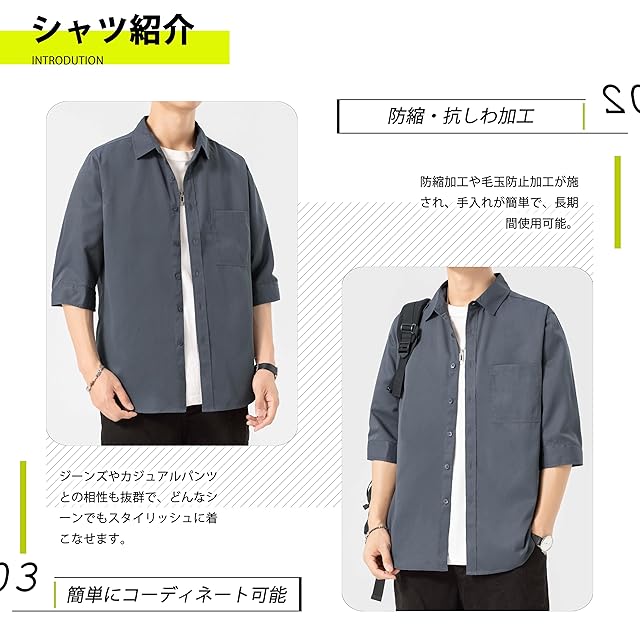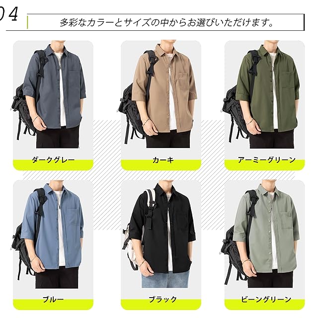 [着回しの便利さ]五分袖デザインで夏の暑さにも快適。ワイドパンツ、カジュアルパンツ、ジーンズ、チノパンなど、全てのボトムスとシームレスに調和。豊富なカラーとサイズ展開で、男性のワードローブに欠かせない定番アイテムです。