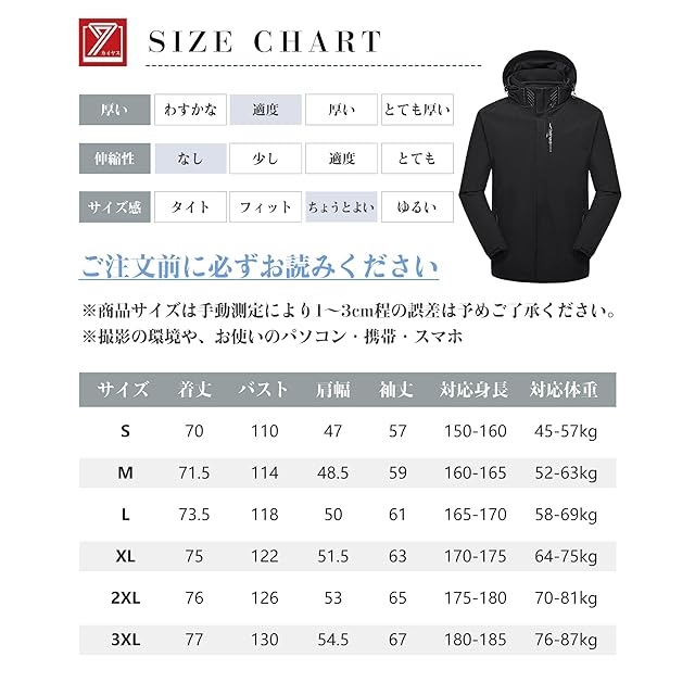 <p> このジャケットは高品質の撥水加工素材を使用しており、雨や風の日でも快適に過ごせます。優れた通気性により、汗をかいても快適に過ごせます。 </p> <p> 上質な撥水加工素材を使用で、防寒性・防風性が抜群、気候が変わりやすい春秋冬季節に最適なメンズジャケットが登場です。登山、釣り、キャンプなど、様々なアウトドア活動に適しています。耐久性と機能性を兼ね備えた設計で、アクティブなシーンでも活躍します。 </p> <p> Sサイズ から 3XLサイズ までの幅広いサイズ展開があり、子供から大人まで幅広い年齢層に適しています。家族全員でコーディネートを楽しむことができます。 </p>