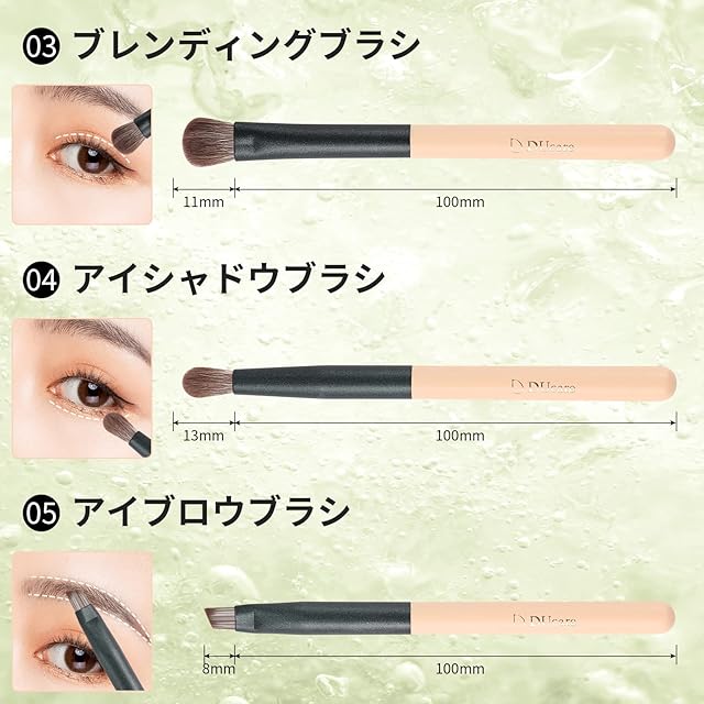 【携帯便利5本セット】アイブロウブラシ、アイシャドウブラシ、ブレンディングブラシ、パウダーブラシ、ハイライトブラシ、毎日のお化粧に必要なコスメブラシ5本セット、ワンセットにしてお送りします。ケース付き収納に困らない、持ち歩きにも最適です。細かくメイク直しをする人や、メイクが崩れやすい人に不可欠な重宝です。