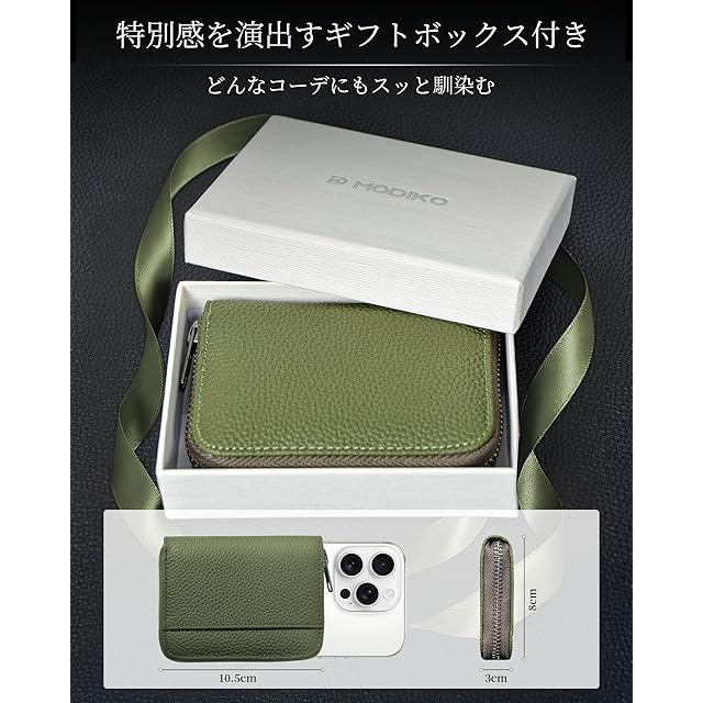 商品名:[Modiko] カードケース メンズ 本革 カード入れ 大容量 スキミング防止 キーリング付き 最大17枚収納 ボックス型小銭入れ クレジットカードケース ykkファスナー プレゼント (ブラック)