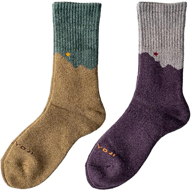 商品名:[千代治のくつ下] メンズ 高御位山 トレッキングソックス 2足組 25-27cm ライトブラウン&ダークパープル 日本製