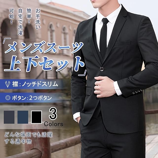 商品名:[YAYOKYA] スーツ メンズ 上下セット 2点セット ビジネススーツ スリム セットアップ 2つボタン 就職スーツ フォーマル 礼服 結婚式 無地 メンズスーツ オールシーズン対応