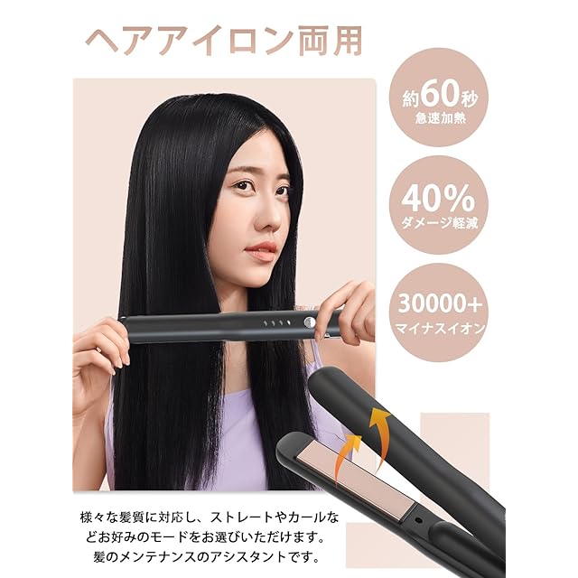【急速加熱&簡単操作】本製品はダブルヒーターを搭載し、約30秒で加熱できます。忙しいときでも手早く髪型を整えることができます。難操作なく、合板を髪の上でスライドさせるだけなので、初心者にも優しいです。 いつもと違うヘアスタイルにしたいなら、ネットでビデオを探してみてください。