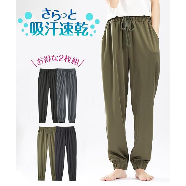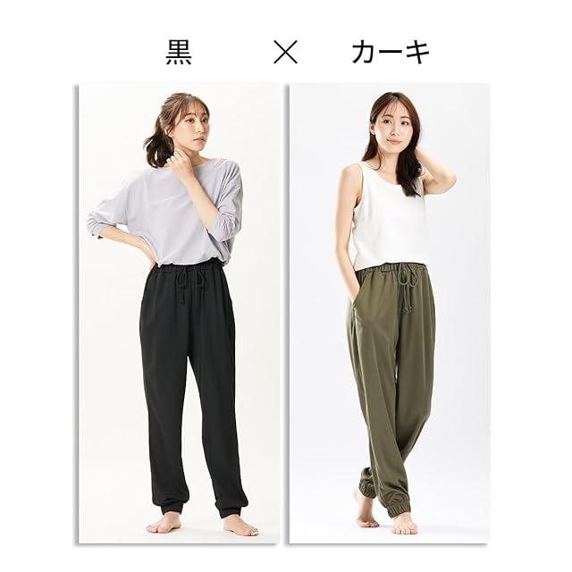 商品名:[ニッセン] ルームウェアボトムス 吸汗速乾 ジャージリラックス裾ゴムロングパンツ2枚組 黒+チャコール M~L