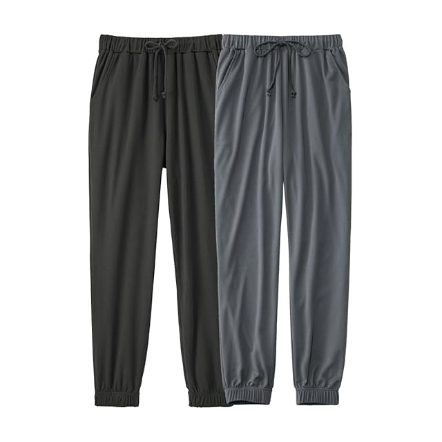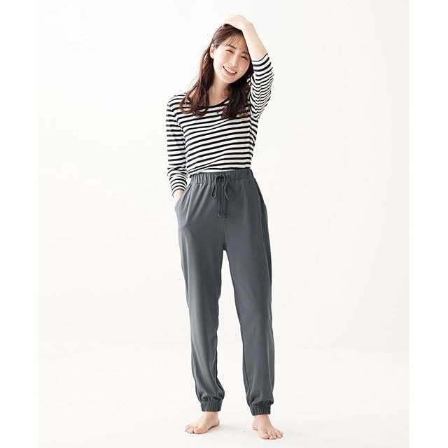 [ニッセン] ルームウェアボトムス 吸汗速乾 ジャージリラックス裾ゴムロングパンツ2枚組 黒+チャコール M~L
