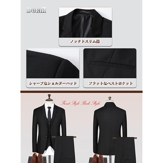 [Yeagio] スーツ メンズ スリーピース 裾上げテープ付 セットアップ 3点セット 2つボタン 無地 細身 スリムシルエット ビジネス 礼服 結婚式 宴会 洗える 軽量 オールシーズン | Trend Design BASE店