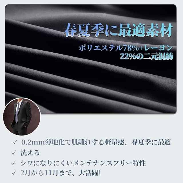 【季節対応素材革新】 ポリエステル78%+レーヨン22%の二元混紡: ✓ 0.2mm薄地化で肌離れする軽量感、春夏季に最適✓ 洗える ✓ 2月から11月まで、大活躍❣ ✓ シワになりにくいメンテナンスフリー特性
