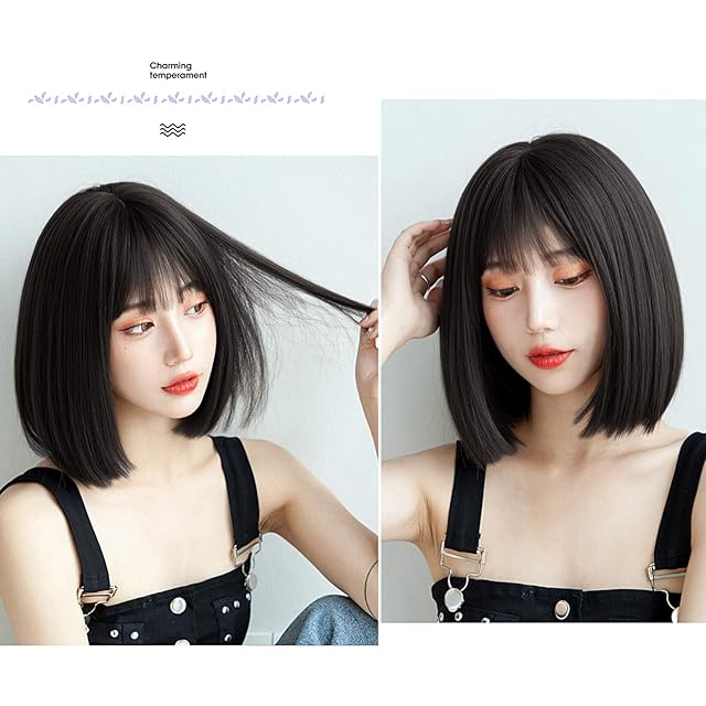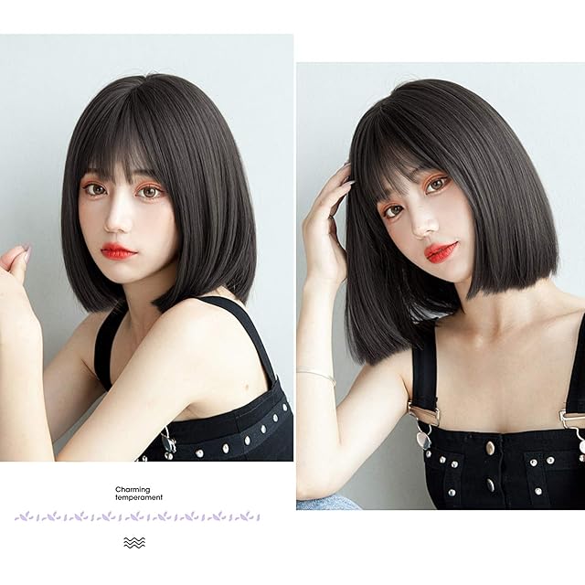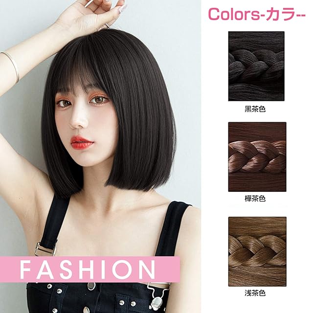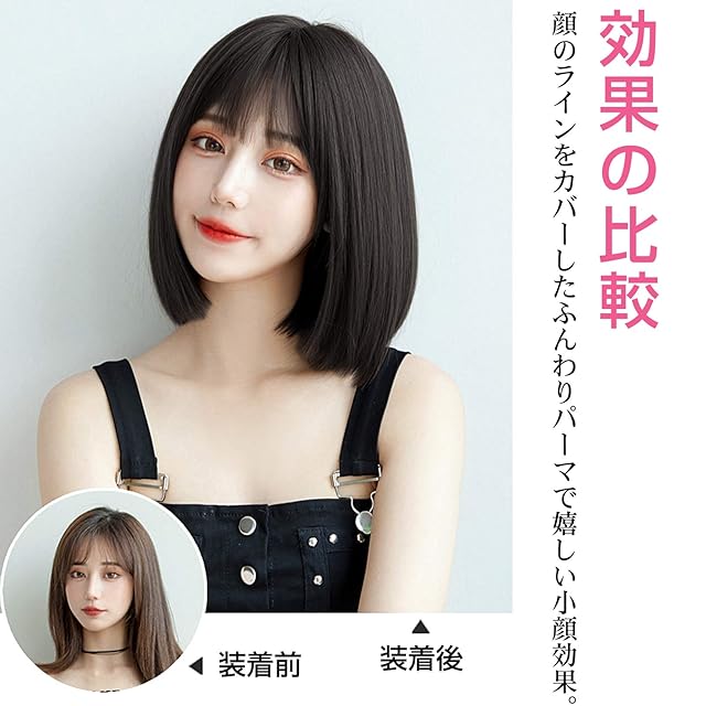 Candybay ウィッグ ボブ ショート レディース wig カツラ ボブショート セミロング ファッション フルウイッグ 小顔 おしゃれ 可愛い 自然 耐熱 ネット付き (ナチュラルブラック) | Trend Design BASE店