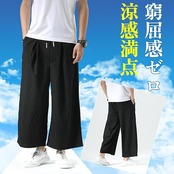商品名:[NEWHEY] ズボン メンズ 9分丈 冷感 前開き サルエルパンツ メンズ 大きいサイズ 通気性 ワイドパンツ ゆったり ボトムス 涼しい カジュアル 黒 L