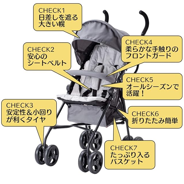 アイリスプラザ ベビーカー おでかけバギー B型 折りたたみ アルミ 軽量 ハイシート (年中使える) 大型タイヤ 日よけカバー グレー 7か月~ 88-1039 1個 (x 1) | Trend Design BASE店