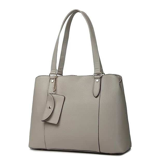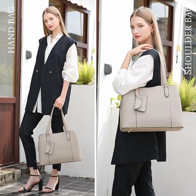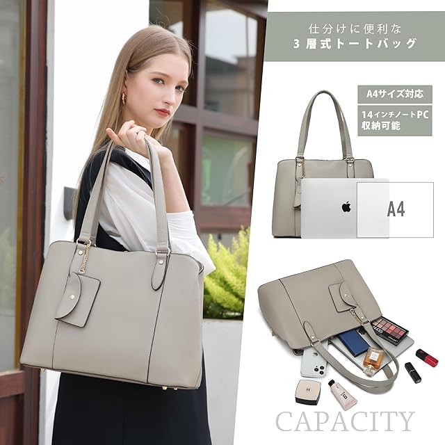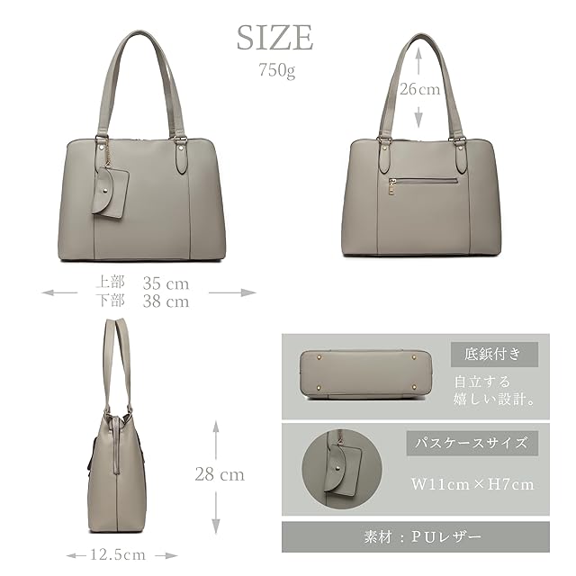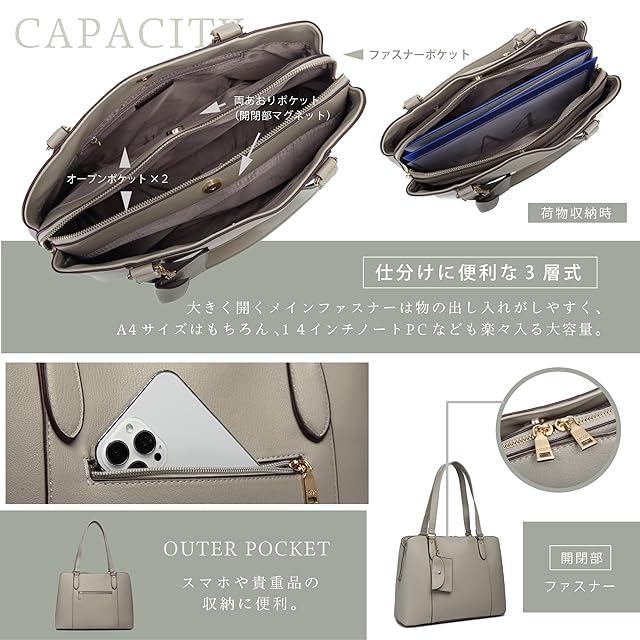 [グッシオ イタリー] [美人百花雑誌掲載]トート バッグ ビジネス 自立 3層式収納 2点セット ミニーポーチ付き A4/14インチPC対応 スクエア PUレザー 高見え ファッション リクルート 通勤 ビジネス レディース italy 17-1129(グレージュ) | Trend Design BASE店