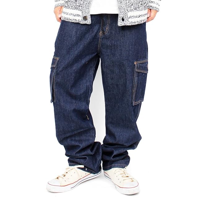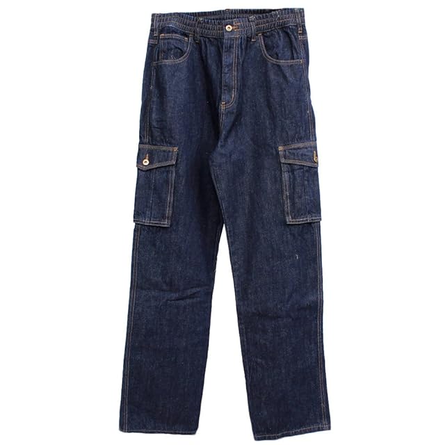 商品名:[エイチレムミュージアム] デニム カーゴパンツ メンズ 大きいサイズ ゆったり ワイド ウエストゴム デニムパンツ ジーンズ5L ネイビー(カーゴ)