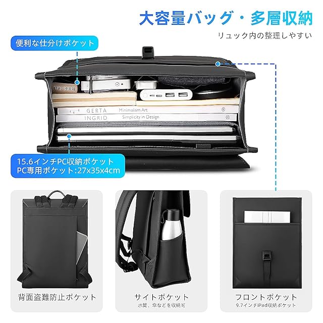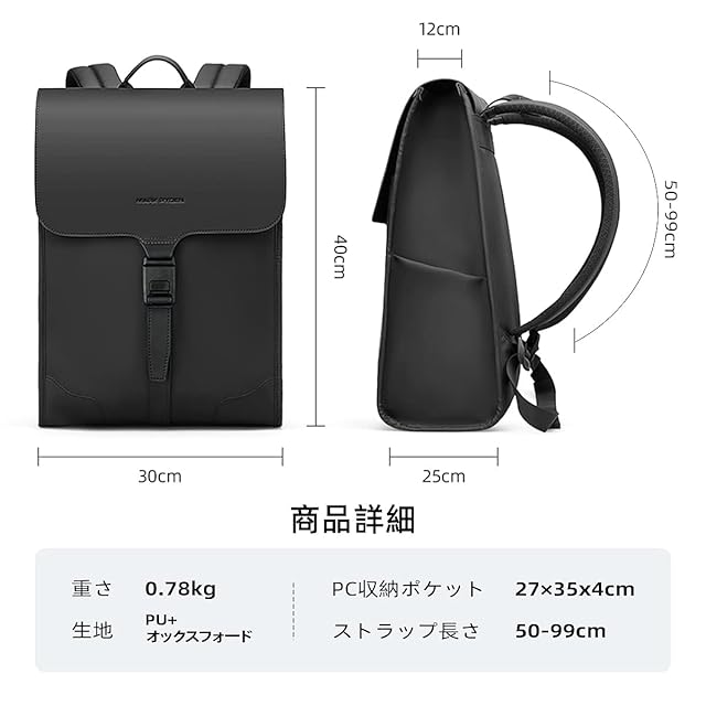 商品名:【MARK RYDEN】 リュックメンズ 軽量 ビジネスリュック 自立 スクエアバックパック 薄型 トラベルバッグ 15.6インチラップトップ デイパック ユニセックス A4 多機能 通勤 通学 出張 旅行 仕事 カバン