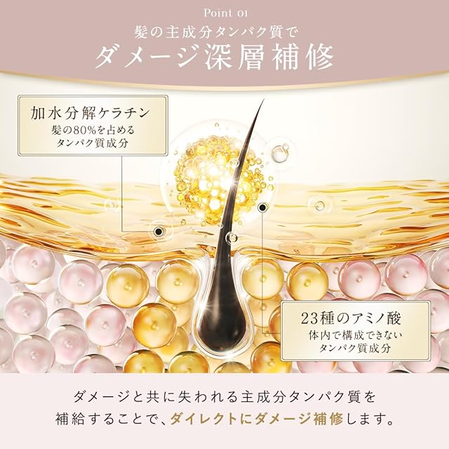 パサつくダメージ髪や髪の芯のダメージまで補修し、 指通りなめらかな髪へ導く深層補修。