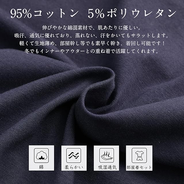 【素材】普通の綿のパジャマよりもなめらかで着心地抜群!まるでシルクのような肌触りを実現しました。この生地だから、汗をしっかり吸収。さらにゆったり設計でしめつけ、くつろげます。