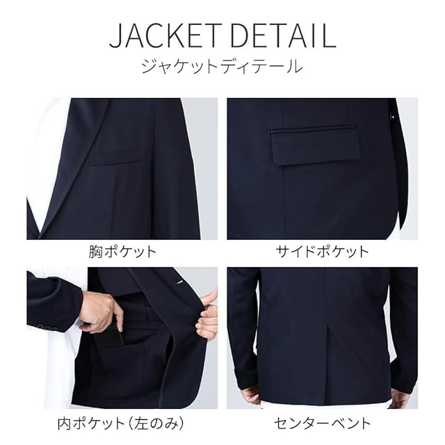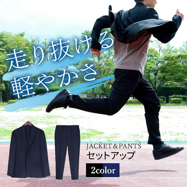 商品名:[アトリエサンロクゴ] カジュアルスーツ 着心地良好 伸縮性 ストレッチ セットアップ 2点セット 上下セット ジャケット スラックス 無地 2つボタン 就職スーツ パーティー カジュアル セットアップスーツ メンズ ネイビー