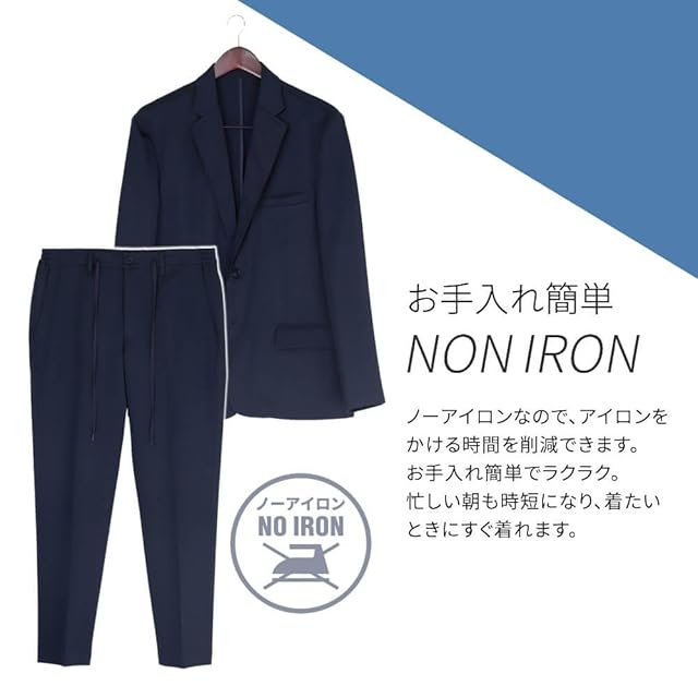 [アトリエサンロクゴ] カジュアルスーツ 着心地良好 伸縮性 ストレッチ セットアップ 2点セット 上下セット ジャケット スラックス 無地 2つボタン 就職スーツ パーティー カジュアル セットアップスーツ メンズ ネイビー | Trend Design BASE店
