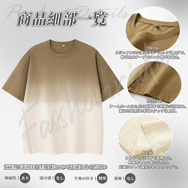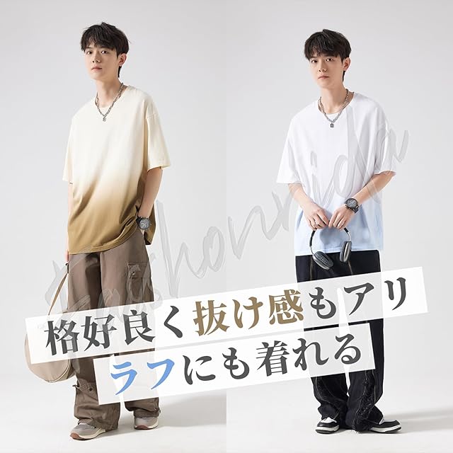 商品名:[Fasshonrida] グラデーション Tシャツ メンズ 半袖 ティーシャツ 夏服 トップス 大きいサイズ ロングtシャツ 綿100 ストレッチ カットソー オシャレ てぃーしゃつ 人気 かっこいい カジュアル 透けない tshirt men 春 夏 black×white L