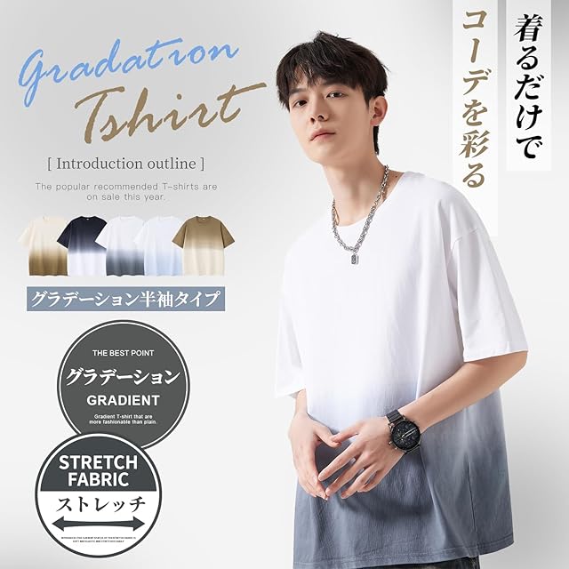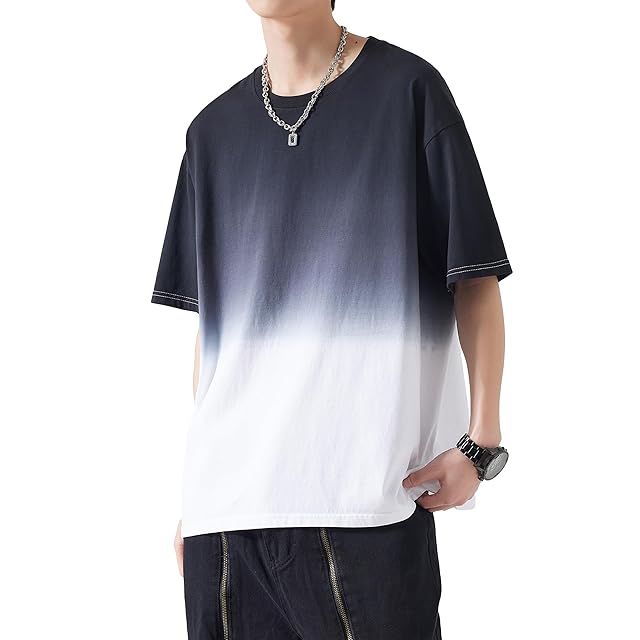 [Fasshonrida] グラデーション Tシャツ メンズ 半袖 ティーシャツ 夏服 トップス 大きいサイズ ロングtシャツ 綿100 ストレッチ カットソー オシャレ てぃーしゃつ 人気 かっこいい カジュアル 透けない tshirt men 春 夏 black×white L