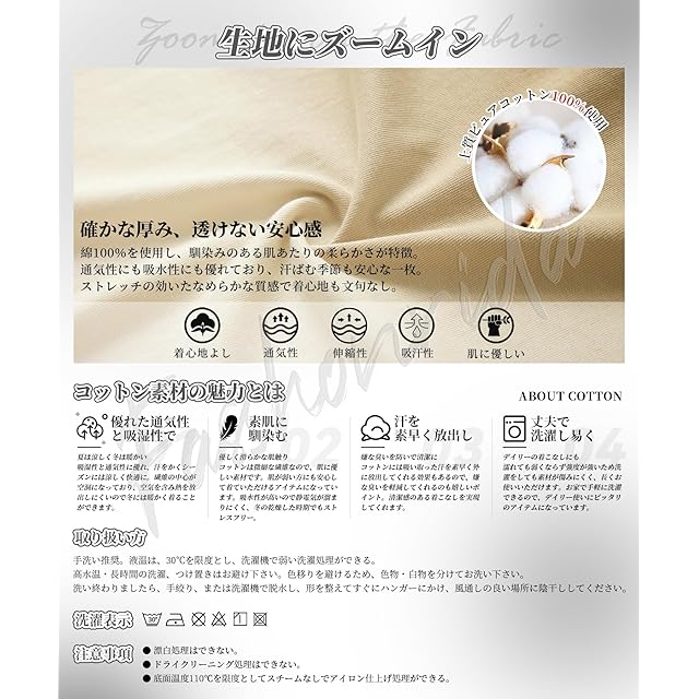 素肌に優しいなめらかな肌触りが特徴の綿100%素材を使用。“自然の優しさを肌に感じる” 上質コットン半袖TEE。どんな用途にも使える、快適な厚み。生地がしっかりとしており、伸縮性に優れているので着ていても締め付け感がなくストレスフリーです。とても柔らかい着心地で、チクチク感がなく肌触り抜群。
