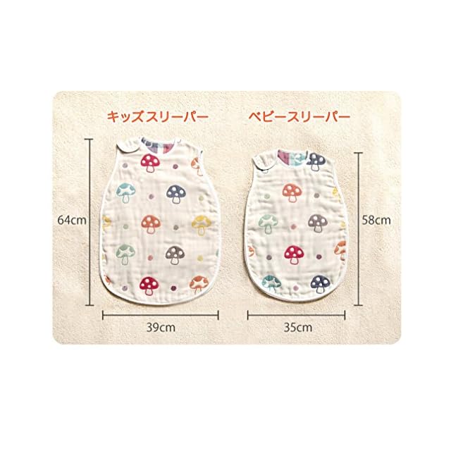10mois(ディモワ) - Hoppetta ふくふくガーゼ(6重ガーゼ) ベビースリーパー コットン100% 新生児~3歳頃まで champignon 着丈58cm 7225 | Trend Design BASE店