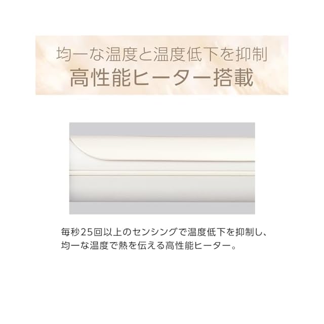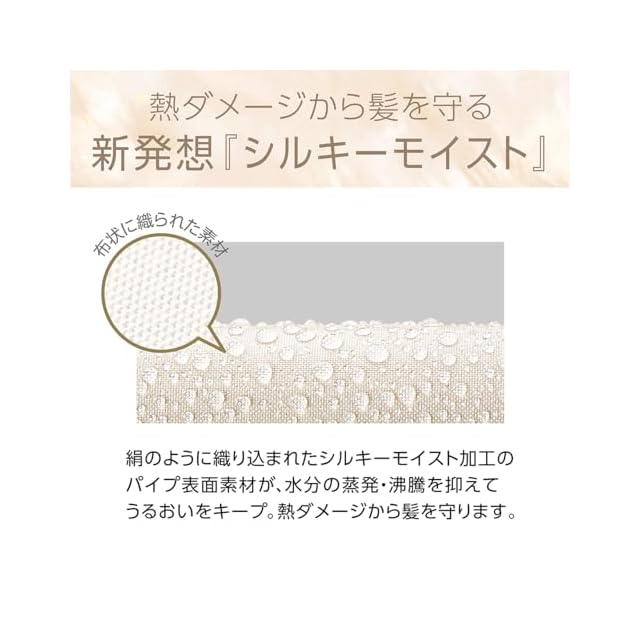 髪にやさしくなめらかなシルキーモイスト加工のロングパイプ。水分の蒸発を抑え、髪への熱ダメージとうるおいを守ります。