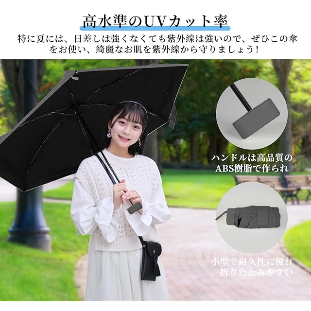 商品名:TVVTO 軽量折り畳み傘 日傘 超軽量ポータブル折りたたみ傘 晴雨兼用 小さなかわいい 持ち運びに便利 紫外線遮断 高強度グラスファイバー 6本骨 日焼け防止 人気 折り畳み傘 耐風撥水 小型 おしゃれ 手動 レゼント 耐久 収納ポーチ付き 大人 (black)