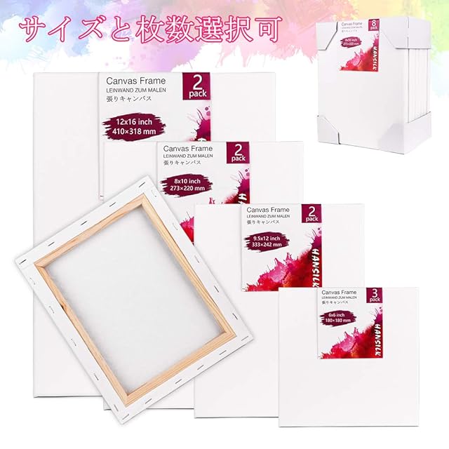 【仕様&丈夫な梱包】:F6サイズ410x318mm、6個/セット【生地】:綿化繊混紡【フレーム】ライト木枠、張りキャンパスはプラスチックフィルムで包まれています。また、四隅はコーナープロテクターがあります、張りキャンパスをしっかり保護し、耐久性ときれいにするために設計されています。