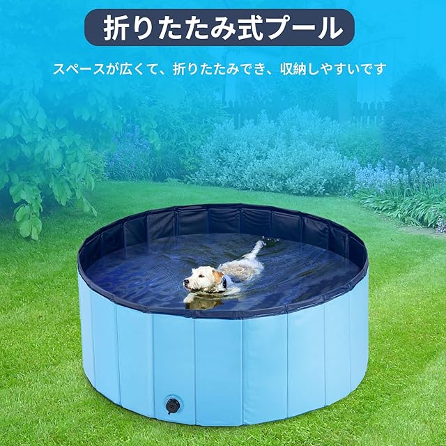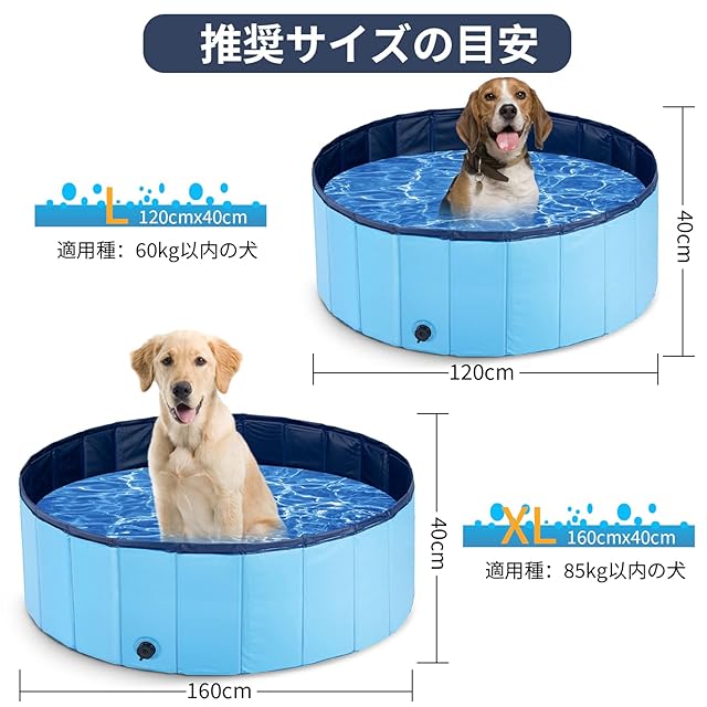 商品名:Ninonly プール 子供用プール 犬用プール ペット用 バスプール 頑丈設計 折り畳み式 収納便利 排水キャップ付 空気入れ不要 屋内用 お庭用 水遊び 直径160x高さ40cm(ブルー)