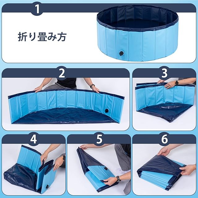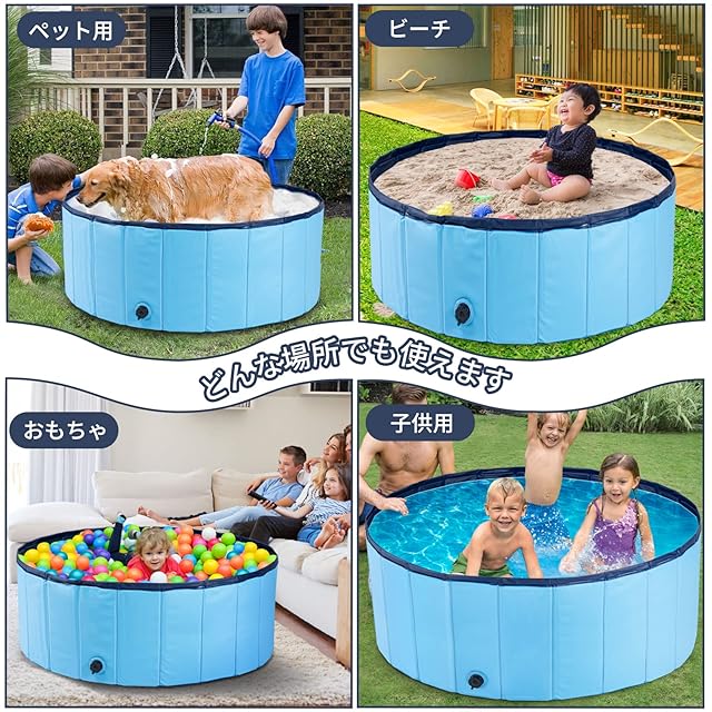 【広範な用途:】屋外プール、バスタブ、おもちゃの箱、砂の箱、1つ4役で1年中使用できます。お子様の水遊び、ペットバス、大きな物を洗う、おもちゃの収納プール、砂遊びプールなどの多くの用途があり、一年中使えます。折りたたんで、簡単に持ち運べるので、屋内、お庭、ビーチ、屋外などいつでもどこでも簡単に使用できます。