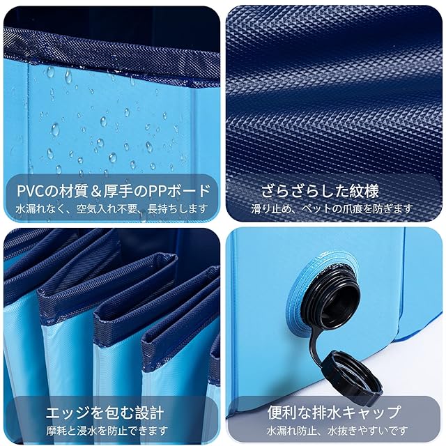 【滑り止め設計:】プールの内側と底側はざらざらした紋様で、滑り止め、ペットの爪痕を防ぎます。しかも、エッジを包む設計で、摩耗と浸水を防止できます。子供とペットちゃんの安全を心配する必要はありません。ご注意:本製品は子供とペットに適します。また、お子様は必ず大人のそばでご使用ください。