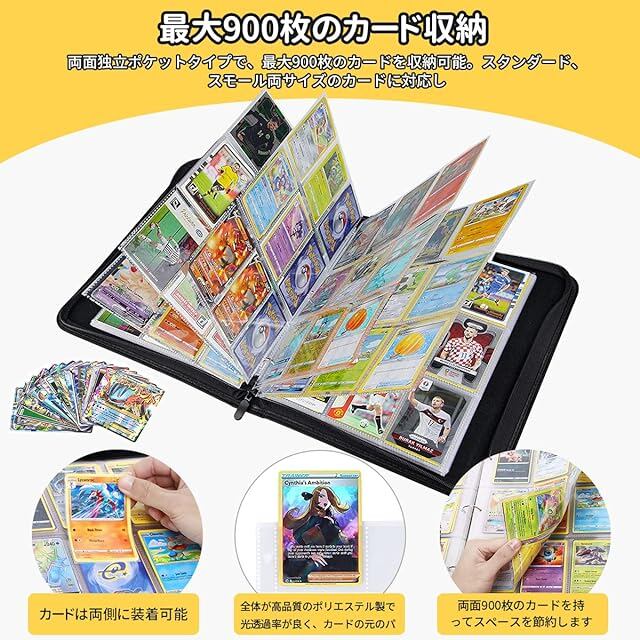 商品名:カードファイル カードバインダー 9ポケット 900枚収納 50枚入り 表面の防水性と耐摩耗性のトレカファイル ポータブルファスナー カードシート他のゲームカードを集める (9ポケット, ブラック B)