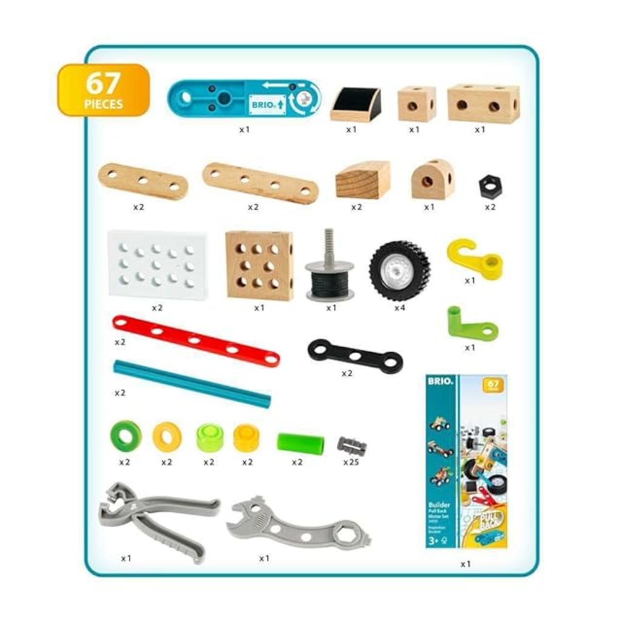 商品名:BRIO(ブリオ) ビルダー プルバックモーターセット 34595「全67ピース」対象年齢3歳~(大工さん 工具遊び おもちゃ 知育玩具 ごっこ遊び)