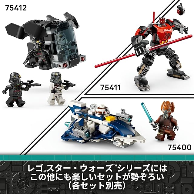 レゴスター・ウォーズシリーズ – ドラマの再現やお話づくり、ディスプレイを楽しめ、幅広い年齢のスター・ウォーズファンに喜ばれるラインナップを揃えています(各セット別売)