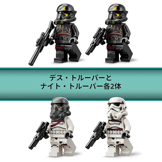 レゴスター・ウォーズ ミニフィギュア4体 – デス・トルーパーとナイト・トルーパー各2体は、ヘルメットとブラスターを装備しています