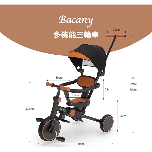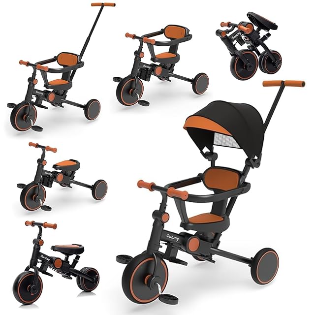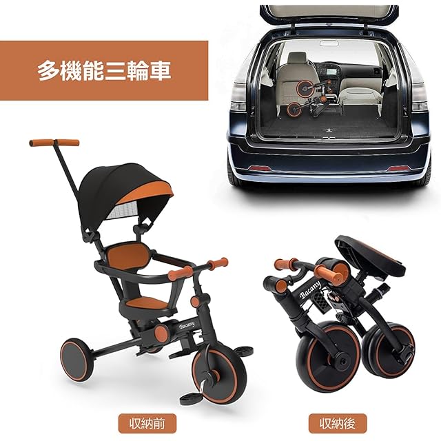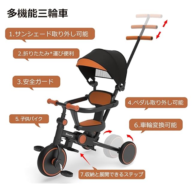 Bacany 子供用三輪車 7in1 三輪車 折りたたみ 手押し棒 おしゃれ 1歳-6歳 コンパクト 自転車 おもちゃ 乗用玩具 幼児用 キッズバイク プレゼント おもちゃ 調整可能 お祝い ギフト シートベルト付き