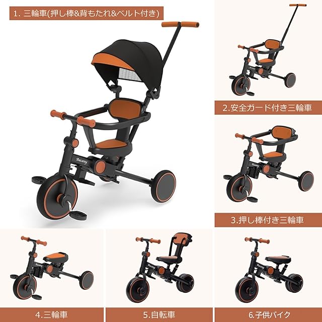商品名:Bacany 子供用三輪車 7in1 三輪車 ステップ付き 折りたたみ 手押し棒 おしゃれ 1歳-6歳 子供バイク コンパクト 自転車 おもちゃ 乗用玩具 幼児用 キッズバイク プレゼント おもちゃ 調整可能 お祝い ギフト シートベルト付き (ブラック)
