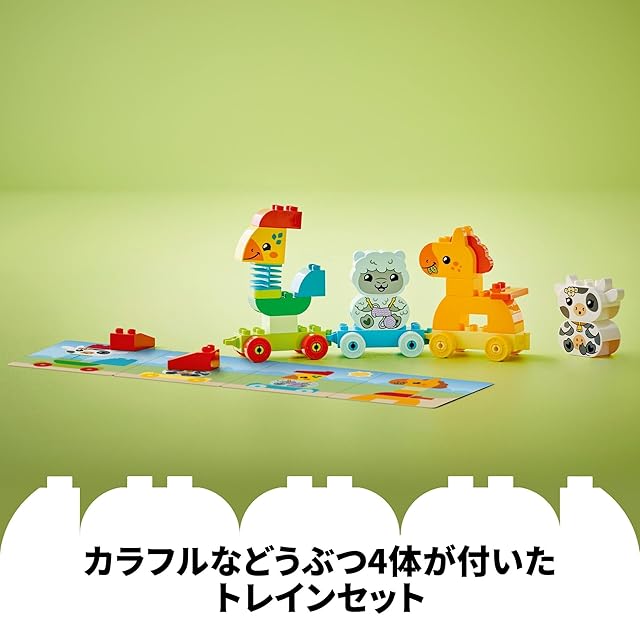 どうぶつと乗り物 – レゴデュプロ はじめてのデュプロ どうぶつれっしゃは、お子さまが組み立てたどうぶつ4体を連結する台車3台に乗せて遊べるプルトイです(対象年齢:1才半以上)
