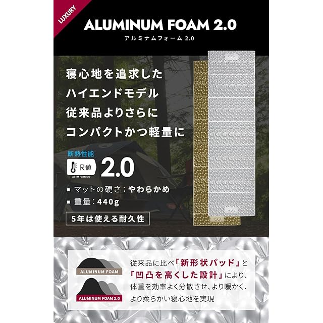 【最高品質のアルミ加工】保温性だけでなく、肌ざわりも重視したキャンプマット。夏でもべたつきません